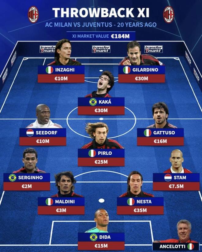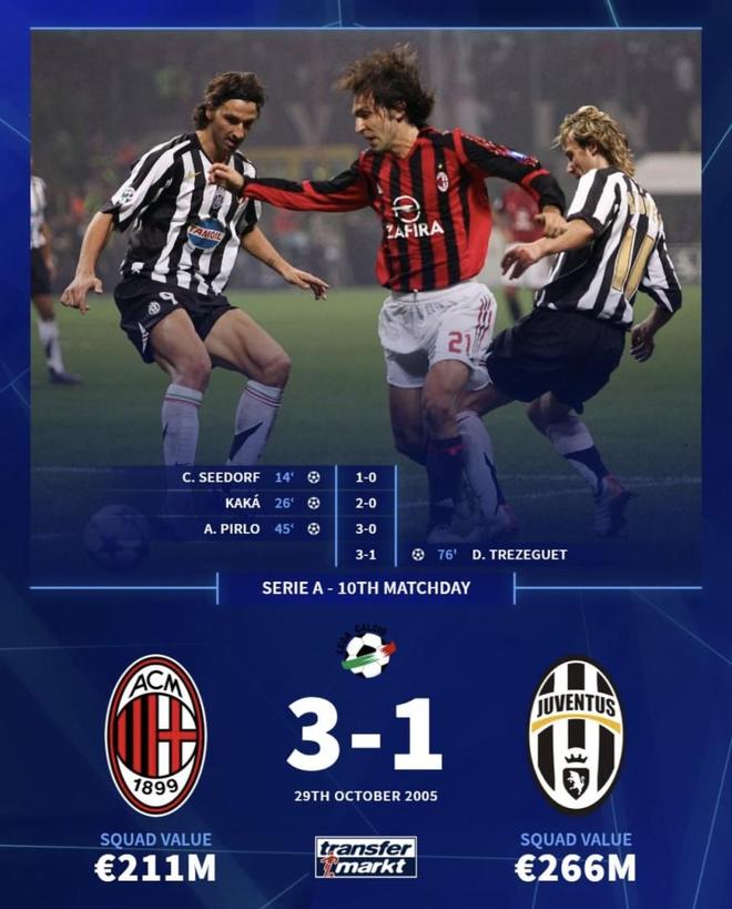 近日,知名足球數(shù)據(jù)網(wǎng)站德國轉(zhuǎn)會(huì)市場的一組回顧數(shù)據(jù)引發(fā)討論,復(fù)盤了2005年10月29意甲第10輪AC米蘭對陣尤文圖斯的經(jīng)典較量。